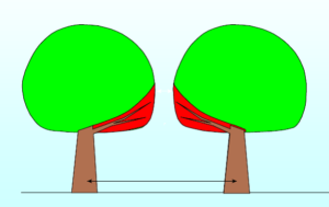 Der optimale Abstand von Baum zu Baum lässt sich auch nach folgender einfachen Formel berechnen: Angestrebter Stammdurchmesser x 25 = Abstand innerhalb der Baumreihe.